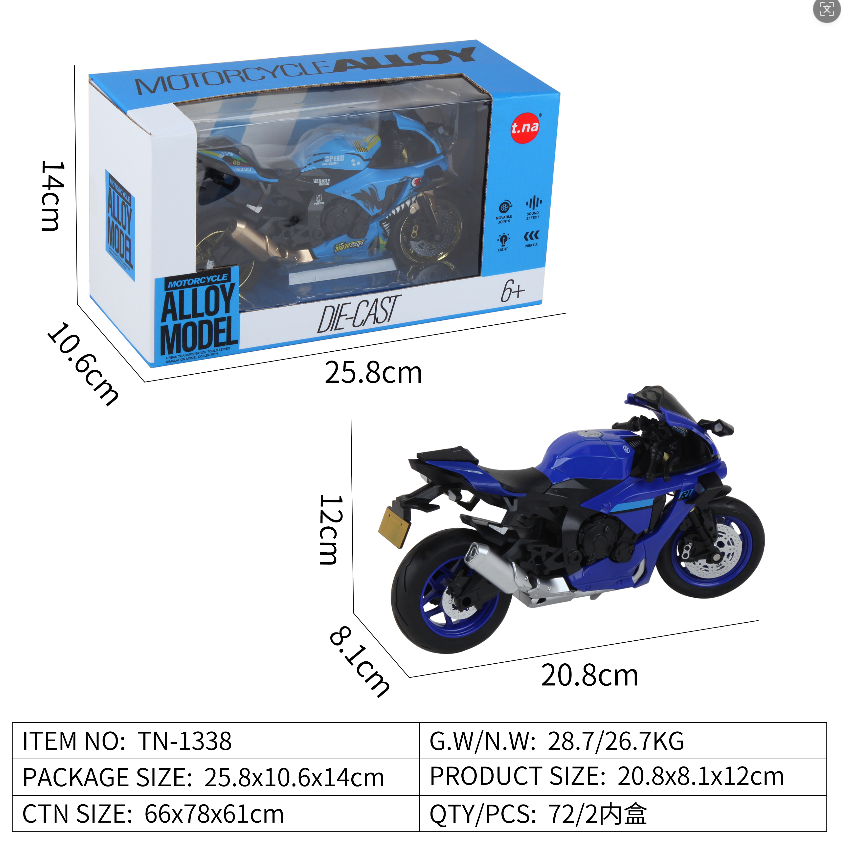 [News Release] Recently, renowned model manufacturer T.N.A Toy Factory has once again ignited the collectible alloy vehicle market with the official launch of its meticulously crafted series of six major motorcycle brand models. This collection features classic models from six iconic manufacturers: Yamaha, Suzuki, BMW, Kawasaki Off-road, Jialing, and Ducati. Combining exquisite detailing with immersive play features, it brings the speed and passion of the racetrack to the fingertips of motorcycle enthusiasts and model collectors alike.